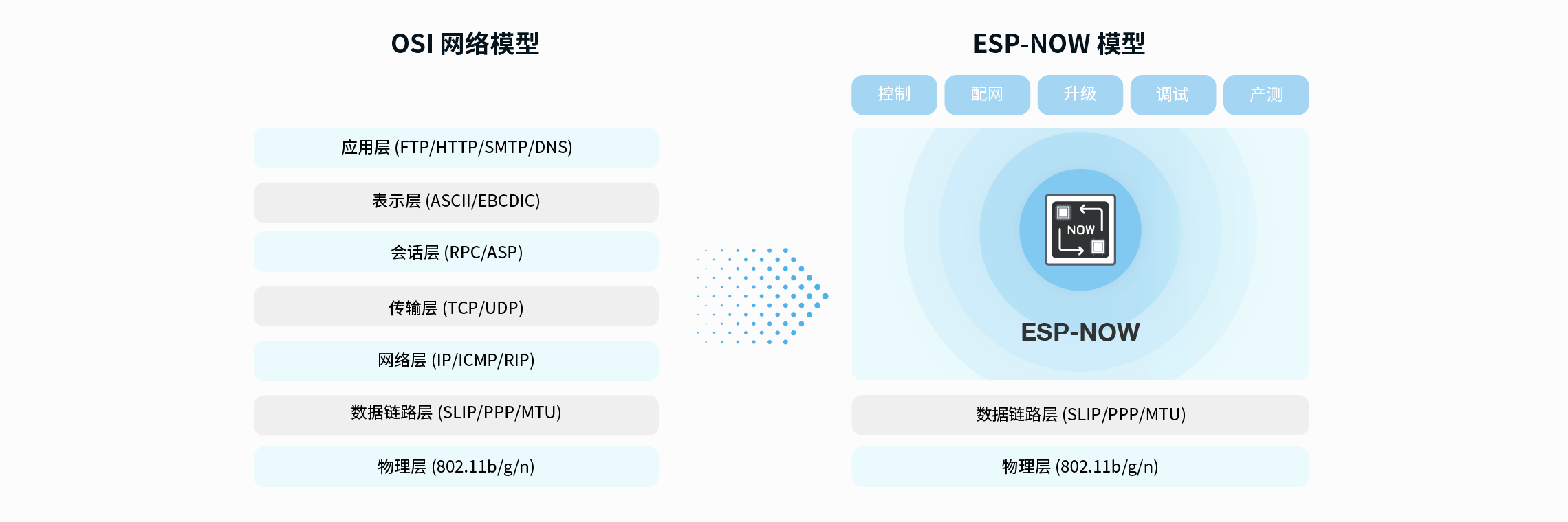 ESP-NOW 是 Espressif 提供的一种低功耗、低延迟的无线通讯协议,适用于 ESP8266 和 ESP32 系列芯片。它允许设备之间直接进行点对点通信,而无需通过 Wi-Fi 路由器,从而实现更高效的通讯方式。其实现基于 IEEE 802.11 协议,但省略了传统 Wi-Fi 通信中的握手和连接过程。